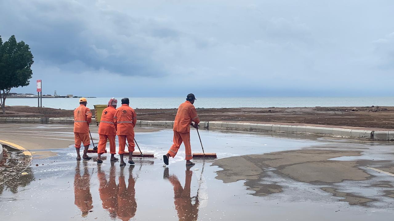 فرق طوارئ تضم أكثر من 120 عامل و 30 معدة و 9 مراقبين و قد تمت أعمال النظافة لأكثر من 9 عبارات .