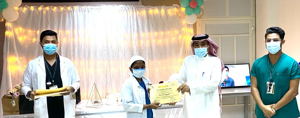 للكادر التمريضي وزيارة المرضى المنومين وتقديم الهدايا لهم وتكريم عدد من المتميزين في أقسام التمريض بالمستشفى.