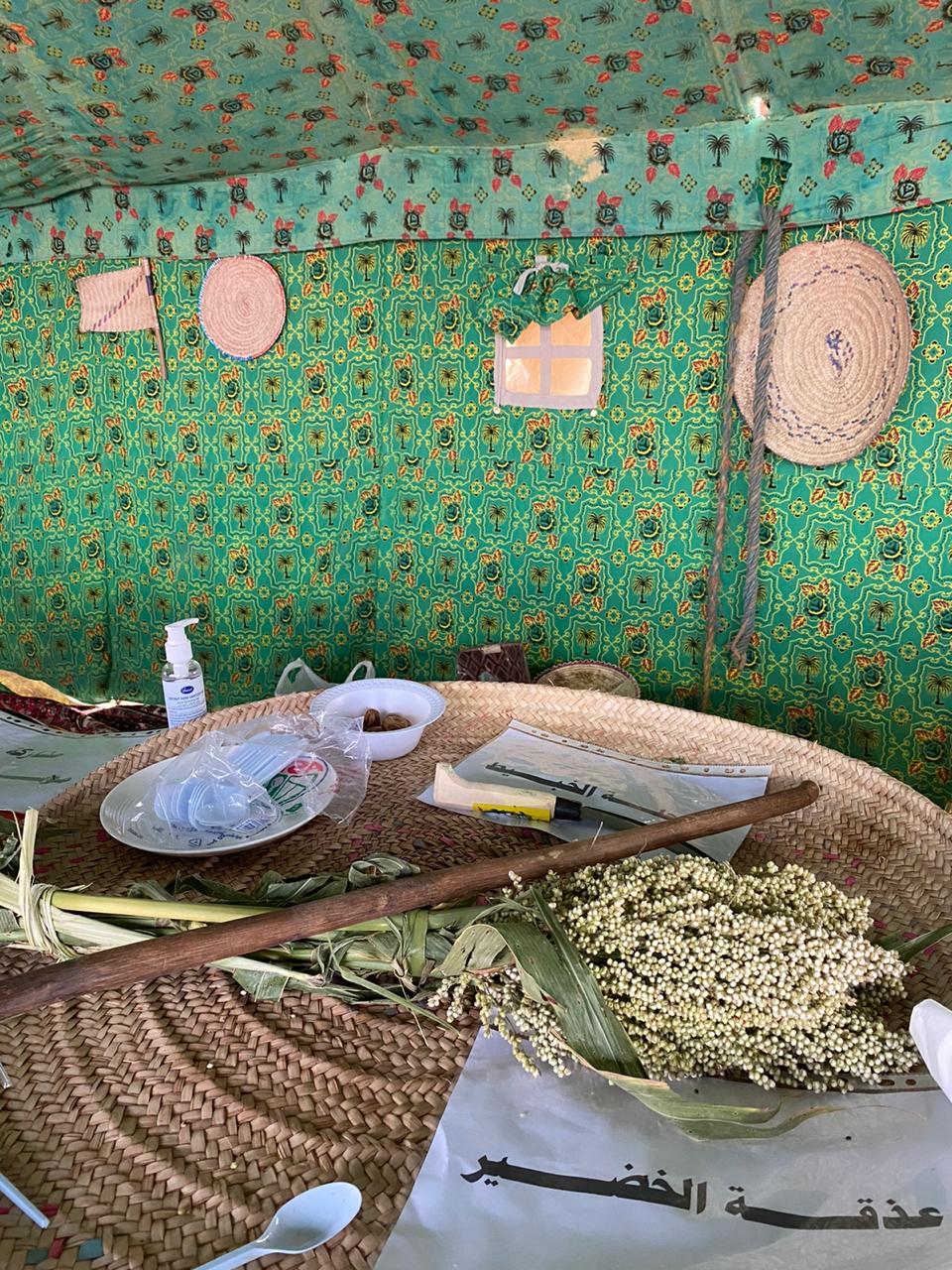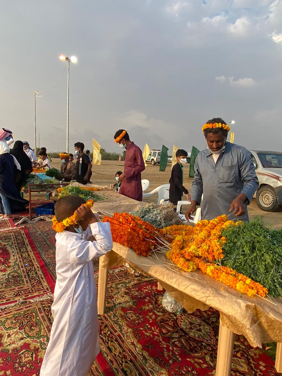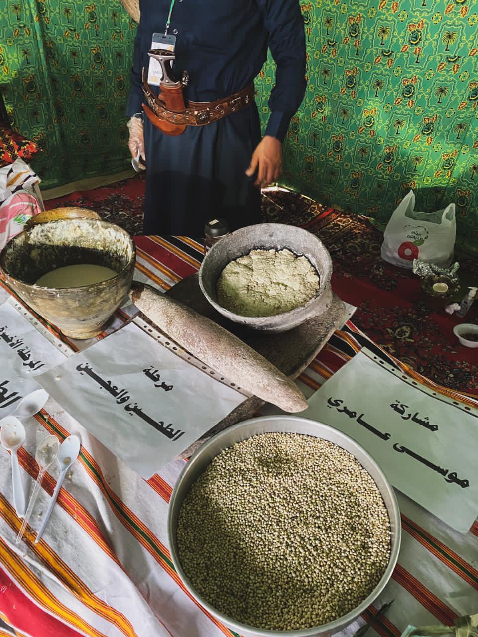 هلال العيسى-الأحساء حيث كان هناك جزءً من عاداتهم الزراعية القديمة و التعريف بجهود المزارعين في المحافظة على زراعة الذرة وطرقها ومواسمها ، والتعريف كذلك بموسم الخضير وهو قطف حبوب الذرة الخضراء الطرية . حيث شارك من خلالها المزارعون في التعريف بعمليات جمع الحبوب وفصل الحبة عن سنبلتها بعد ضربها بعصا من خلال عملية تسمى ” الخبيط “ثم تجهيزها بطحن هذه الحبوب بالطريقة التقلدية المستخدمة وتسمى الطحين باستخدام المطحنة المصنوعة من حجر وعمود يسمى الودي لطحنها وتجهيزها للخبز . إلى جانب قدمت الوجبات الشعبية التي تم إعدادها من الخضير ،ومعرض الأسر المنتجة. بالإضافة لمعرض النباتات العطرية الفُل والكادي والخطور والشيح والبعيثران والنرجس والنعناع والحبق . كذلك عرضت العديد من الألعاب الشعبية التي ترافق هذا الموسم وبهوازيج تراثيه بإبداع من قبل النابوش محمد عطيف والدابوش عبده دبش والفنان ناصر خافي لتقديم لوحة شعبية رائعه تمثل تراث المنطقة. وأيضاء من ضمن الأركان شاركة وزارة الصحة و جمعية سُكنى بضمد بطرح مواضيع تهم المجتمع و الاسر في ضمد و ضواحيها للاستفاده منها .