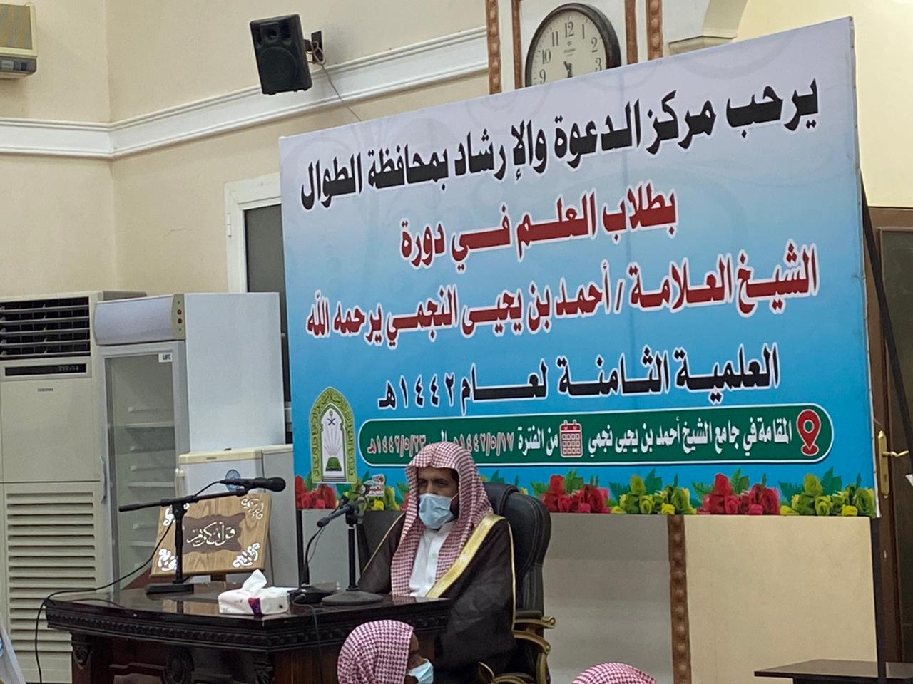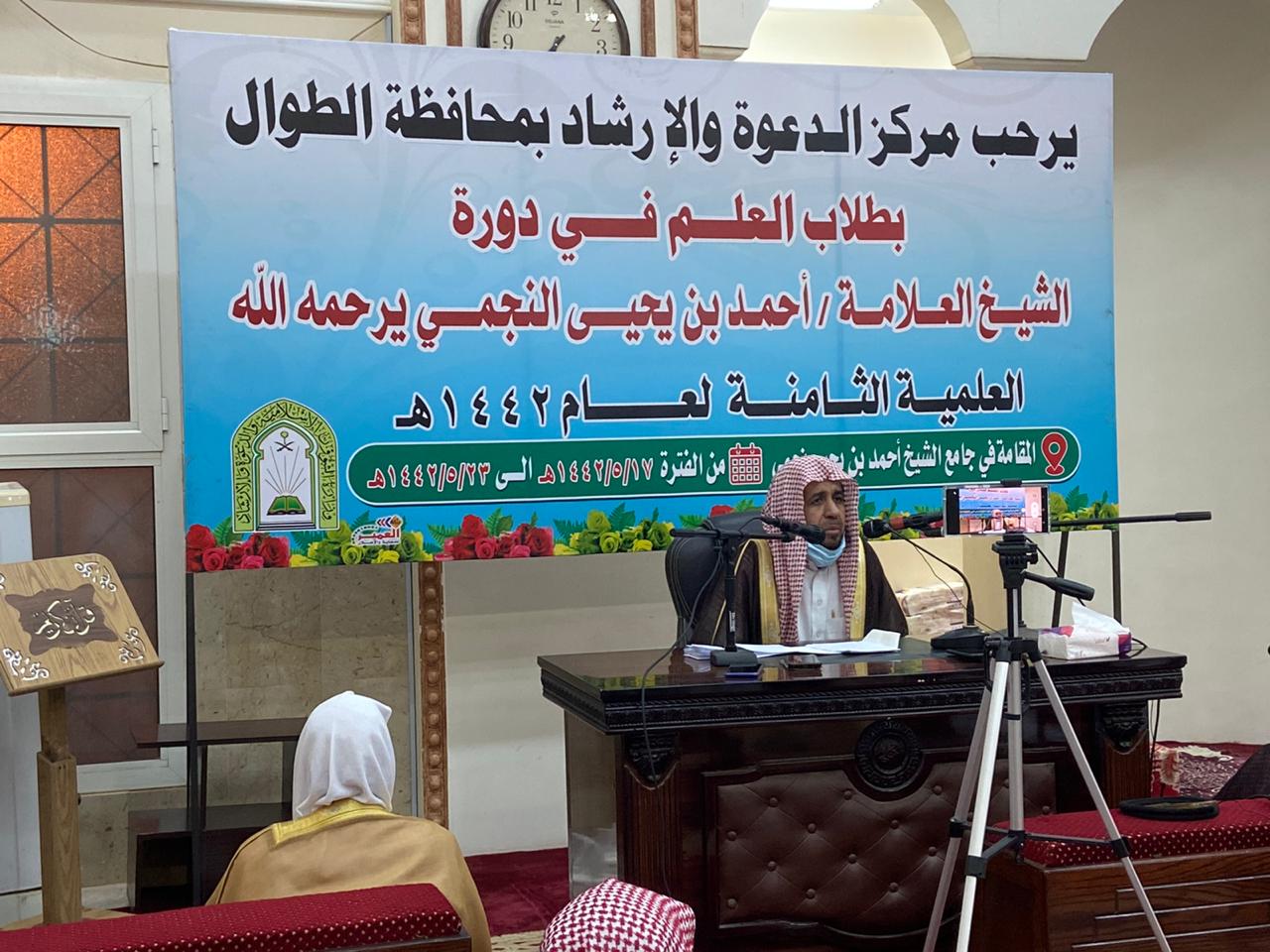 انطلقت دورة الشيخ العلامة أحمد بن يحيى النجمي – يرحمه الله – الثامنة لعام 1442 هـ مساء يوم أمس الجمعة بجامع الشيخ أحمد النجمي – يرحمه الله – بقرية النجامية والتي ينفذها فرع وزارة الشؤون الإسلامية والدعوة والإرشاد في منطقة جازان مُمثلاً بمركز الدعوة والإرشاد بمحافظة الطوال.