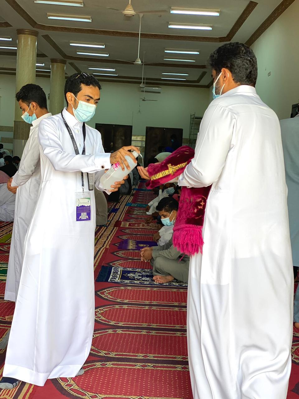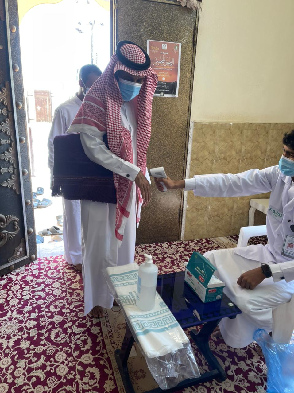 وشارك مراقبي المساجد والموظفين في إدارات التطوع بالفروع بالتنسيق مع الجهات الأمنية المختصة والجمعيات الأهلية والمؤسسات الخيرية بتنظيم دخول المصلين ومتابعة التزامهم بالإجراءات الإحترازية، وإجراء فحص الحرارة لهم عند الدخول.