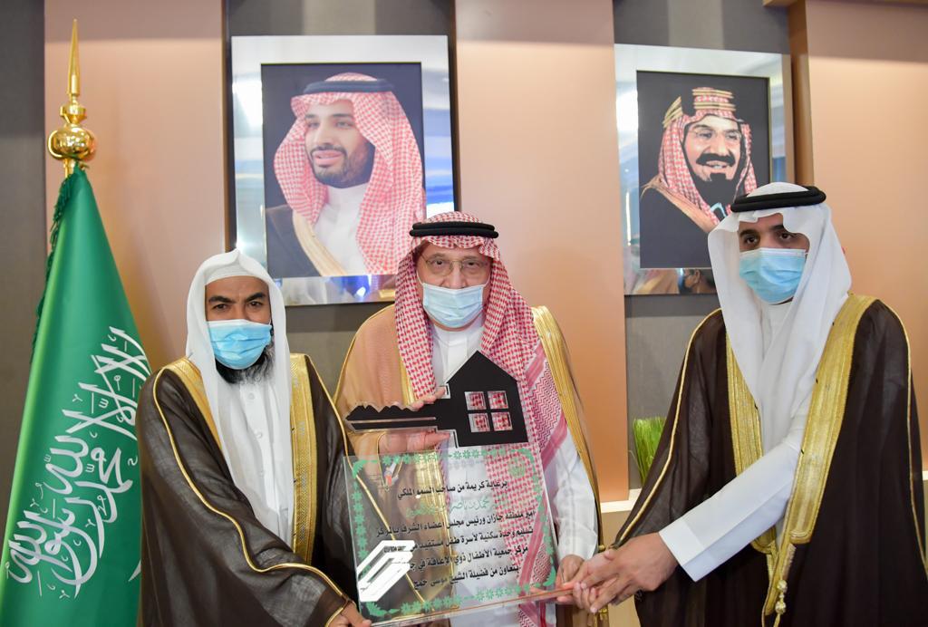 وفي ختام الاجتماع سلم سمو أمير منطقة جــازان ، وحدة سكنية لاسرة طفل مستفيد من خدمات مركز جمعية الاطفال ذوي الاعاقة بجـــازان بتعاون من عضو شرف المركز الشيخ موسى خمج.