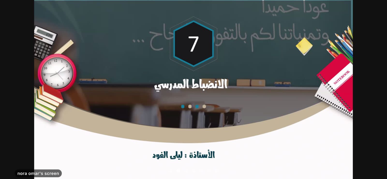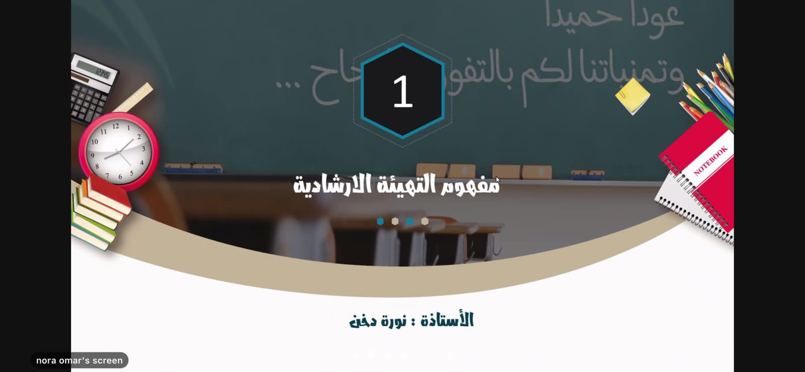 ومن جانبها بينت مشرفة الإرشاد النفسي الأستاذة ليلى الفود الانضباط المدرسي، و استعرضت مشرفة الإرشاد التربوي الأستاذة نورة دخن آليات التهيئة الإرشادية والأسبوع التمهيدي.