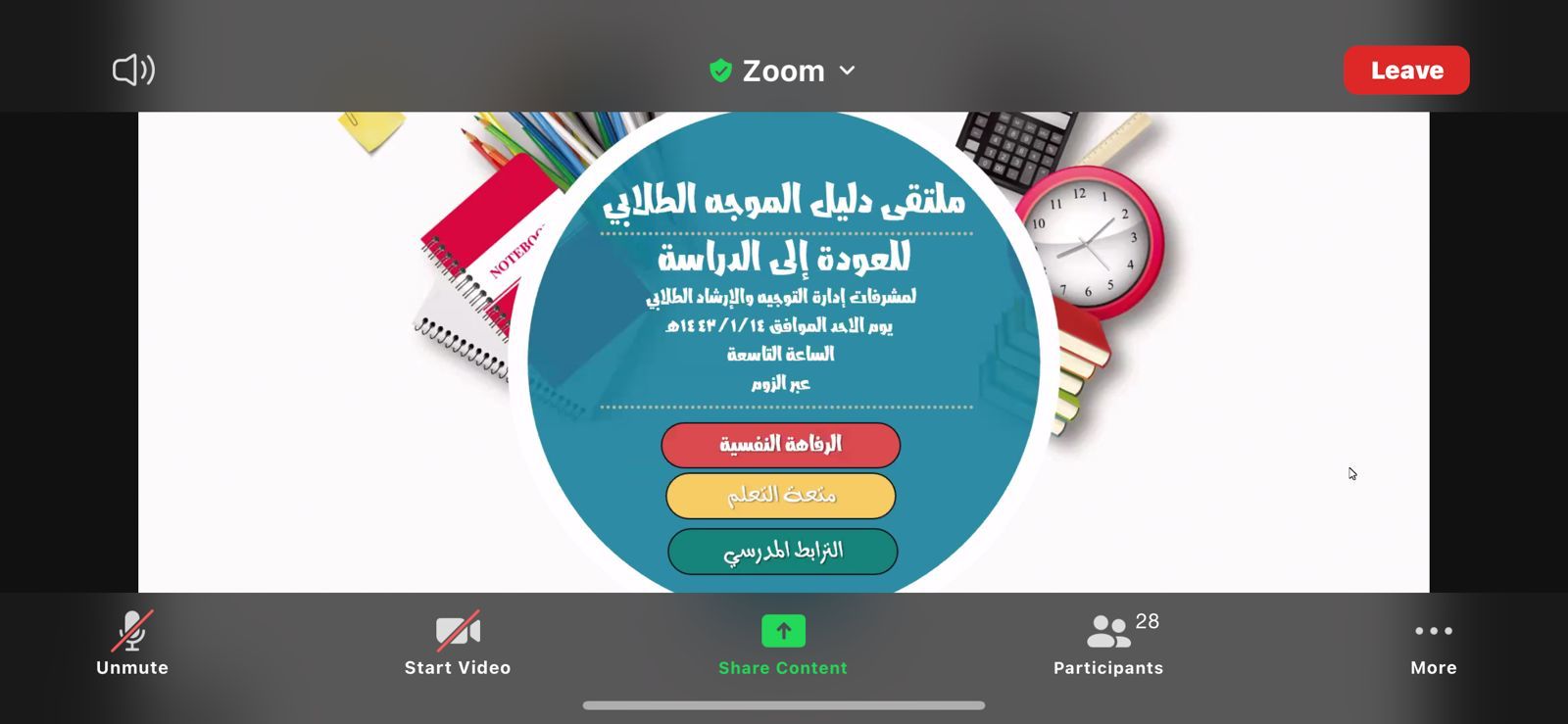 واختتم اللقاء بكلمة لمديرة التوجية والإرشاد جاء فيها أن التهيئة الإرشادية لهذا العام لابد أن تشمل جميع الصفوف الدراسية بما يحقق لهم الاستقرار والشعور بالرضا عن العودة لمقاعد الدراسة في بيئة صحية آمنة بما يضمن للطلبة متعة التعلم والاندماج الإيجابي وبالتالي تجعلهم أكثر دافعية.