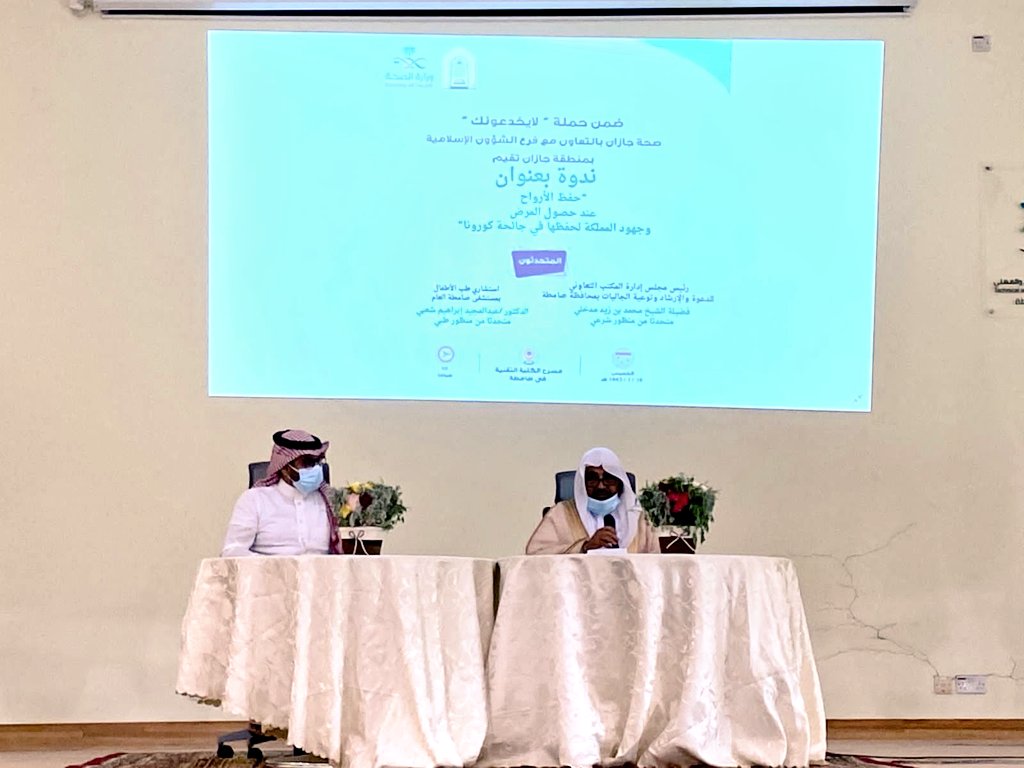 نظم الندوة مستشفى صامطة العام، بالتعاون مع فرع وزارة الشؤون الإسلامية في المنطقة، ضمن حملة “لا يخدعونك”.
