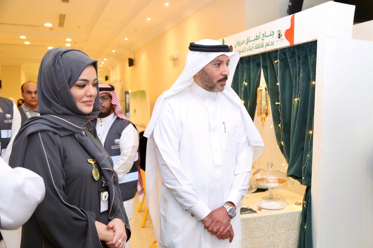 سعادة الشيخ سعود بن محمد بن عبدالعزيز آل رفه وحرمه صاحبة السمو الشيخة غادة بنت عبدالله بن حمد بن عيسى آل خليفة وسعادة مدير عام الشؤون الصحية الدكتور وائل بن حمزه مطير الذي زار جميع الاجنحة وبارك للمتطوعين جهودهم المباركة في خدمة فئة ذوي شهداء الواجب.