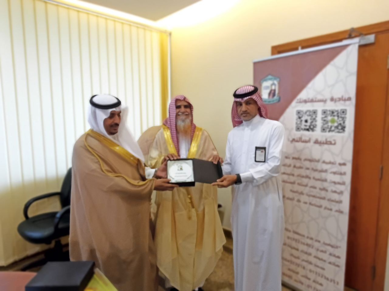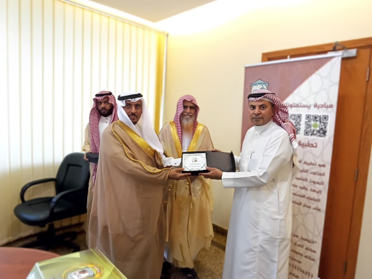 جاء ذلك أثناء استقباله لمفوض الإفتاء بمنطقة جازان الشيخ محمد بن شامي شيبة ومدير عام فرع الرئاسة العامة للبحوث العلمية والإفتاء بجازان سعادة الاستاذ عبدالله بن علي حمدي ورحب سعادته في مستهل اللقاء بفضيلة الشيخ شيبة مفوض الإفتاء بمنطقة جازان متمنياً له التوفيق في أداء مهامه وخدمة دينه ووطنه .