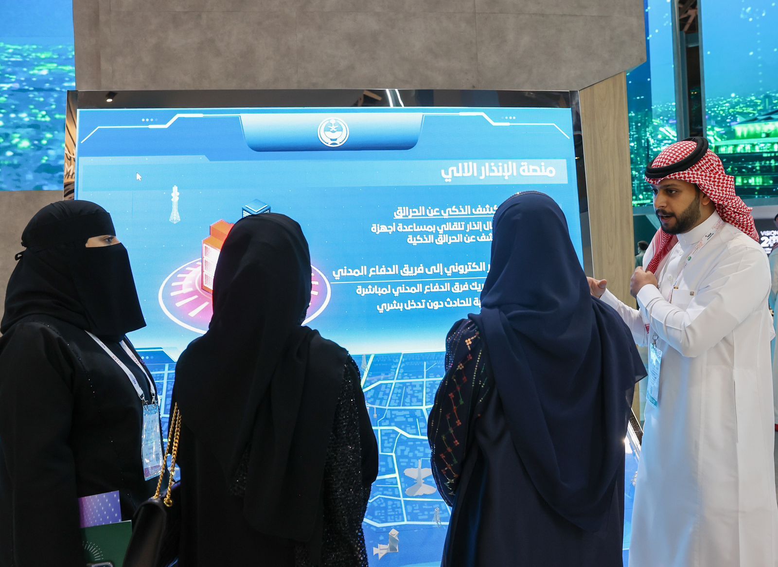 وتشمل مشاركة المديرية عرض أهم الحلول التقنية المبتكرة والمستخدمة في إدارة الأزمات والكوارث وتقديم خدمات تصاريح السلامة، واستعراض أهم تقنياتها، كالمنصة الوطنية للإنذار المبكر في حالات الطوارئ لبث رسائل تحذيرية باستخدام خدمة البث الخلوي، يتم من خلالها بث الرسائل التحذيرية مصحوبة بنغمة مميزة إلى الهواتف المتصلة بشبكات الجوال المتنقلة لتحذير السكان وإبلاغهم بما يجب اتخاذه لسلامتهم وحمايتهم، ومبادرة المنصة الرقمية للإنذار الآلي، وهي منصة تعمل على استقبال البلاغات الصادرة من أجهزة الكشف الذكية عن الحريق (كواشف دخان الحريق), بحيث يتم ربط أنظمة الإنذار الآلي بالمنشآت بالمنصة الرقمية بغرفة عمليات الدفاع المدني ليتم توجيه الفرق لمباشرة الحادث دون أي تدخل بشري في الإبلاغ بهدف تحقيق زمن استجابة أسرع للحوادث.