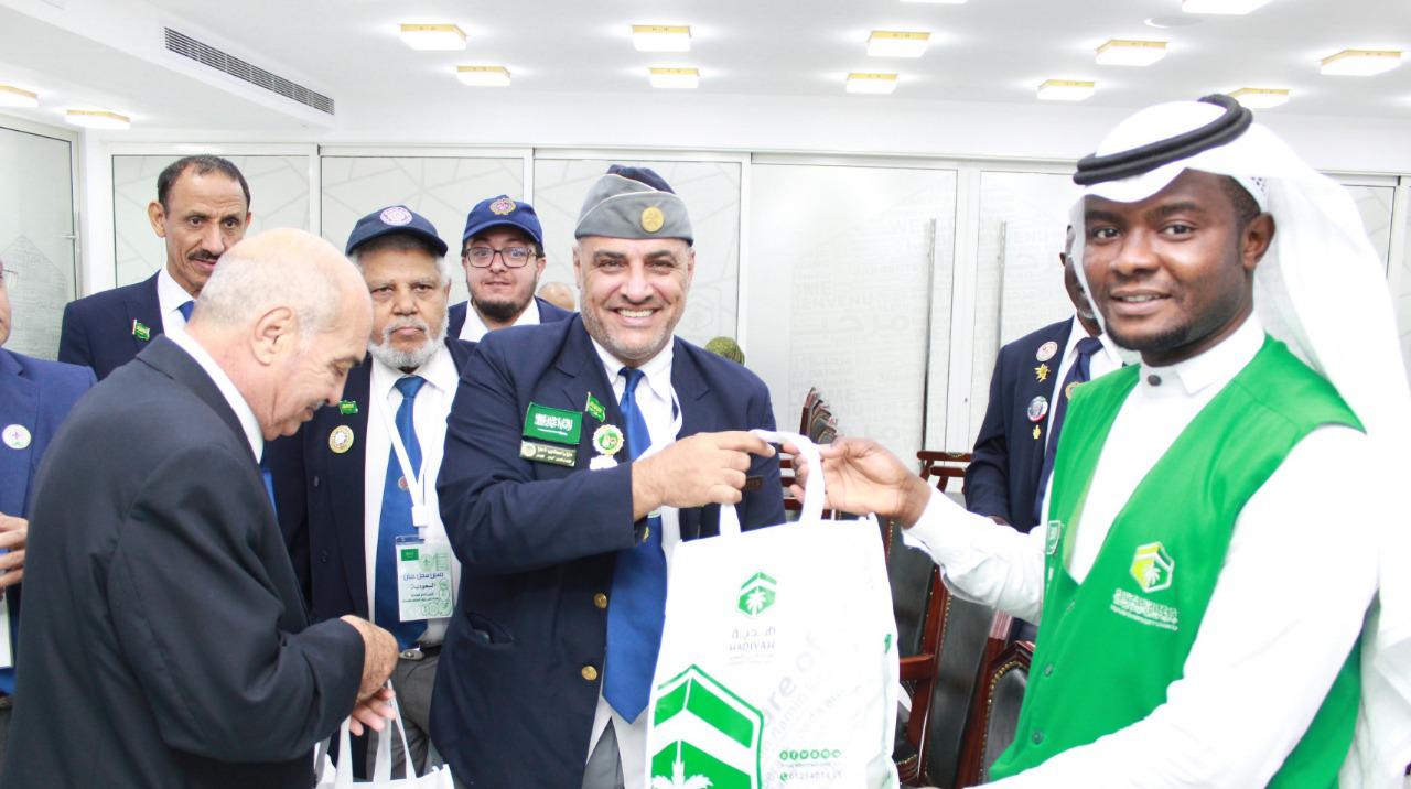 زار وفد الاتحاد العربي لرواد الكشافة والمرشدات بقيادة رئيسه الرائد فتحي محمود فرغلي وامين عام الاتحاد حسين سهل عيبان وعضو اللجنة التنفيذية خليل جميل إبراهيم ورئيس وأعضاء لجنة الاعلام والتوثيق وضمن برنامجهم المصاحب لاجتماع اللجنة بمكة الكرمة مساء يوم أمس الأول مقر جمعية هدية الحاج والمعتمر الخيرية في المنطقة المركزية للحرم المكي الشريف وكان في استقبالهم المشرف على العلاقات العامة والاعلام بالجمعية الأستاذ إبراهيم محمد نوري وتجول الوفد على مقر الجمعية في مشروع جبل عمر واطلع على أبرز منجزات الجمعية وماتقدمه لحجاج بيت الله الحرام عبر 175 مليون خدمه استفاد منها 70 مليون مستفيد من الحجاج والزوار والمعتمرين ، وعرض عملهم ضمن منظومة الخدمات المقدمة لحجاج بيت الحرام والمعتمرين ومرتادي البيت العتيق وزائر المسجد النيوي الشريف التي تقدمها حكومة خادم الحرمين الشريفين وعبر الوزرات والقطاعات الحكومية والأهلية وشارك الوفد في مبادرة #ابتسامتك هديه ، ثم انتقل الوفد بعد ذلك إلى المقر الرئيسي الواقع في مشروع شركة مكة للإنشاء والتعمير في المنطقة المركزية ليشاهدوا فلما وثائقيا يحكي منجزات الجمعية وماتقدمه لمستفيدها لاقى استحسان الضيوف ، ثم عرض مشرف العلاقات والاعلام بالجمعية المرافق للضيوف بعض منتجات الجمعية ، واختتم اللقاء بتقديم هدايا تذكارية للجمعية لكل ضيف من الوفد