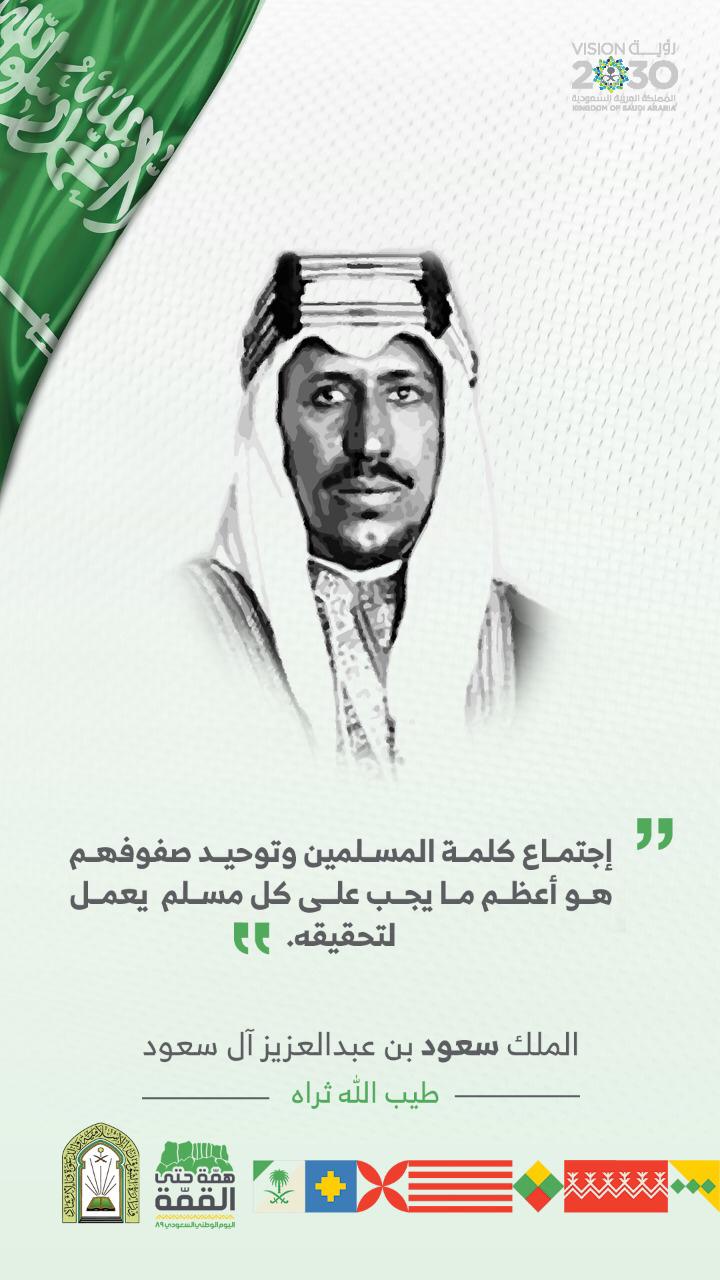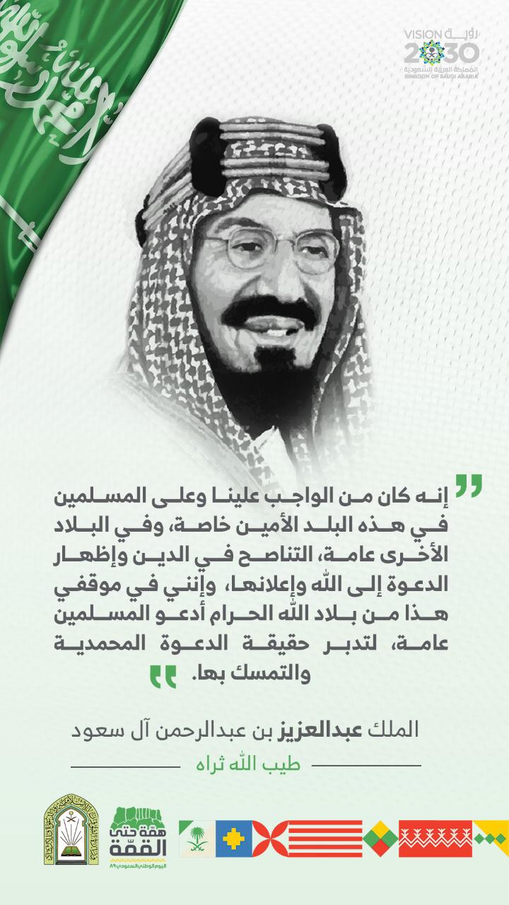 بثت معرفات وزارة الشؤون الإسلامية والدعوة والإرشاد على منصات التواصل الاجتماعي كلمات خالدة لقادة المملكة العربية السعودية تزامناً مع الذكرى الـ 89 لتوحيد المملكة التي تأتي في إطار مشاركة الوزارة في هذه المناسبة الغالية التي تحمل في طياتها تاريخاً حافلاً ومجيداً لقادة هذه البلاد المباركة، التي توحدت على التوحيد والسنة، وأصبحت منارة خير ودوحة أمن واستقرار، يتفيأ ظلالها المواطنون والمقيمون على حد سواء . وتضمنت الكلمات الخالدة التي بثتها الوزارة كلمة للملك المؤسس ــ طيب الله ثراه ــ وهي (( إنه كان من الواجب علينا وعلى المسلمين في هذه البلد الأمين خاصة ، وفي البلاد الأخرى عامة ، التناصح في الدين وإظهار الدعوة إلى الله وإعلانها ، وإنني في موقفي هذا من بلاد الله الحرام أدعو المسلمين عامة ، لتدبر حقيقة الدعوة المحمدية والتمسك بها )) . وكلمة للملك سعود ــ طيب الله ثراه ــ (( اجتماع كلمة المسلمين وتوحيد صفوفهم هو أعظم ما يجب على كل مسلم يعمل لتحقيقه )) . فيما جاءت كلمة الملك فيصل ــ طيب الله ثراه ــ (( كل ما نهدف إليه أن نتعاون مع إخواننا في سبيل مصلحة أمتنا ووطننا )) . ثم جاءت كلمة الملك خالد ــ طيب الله ثراه ــ (( فإننا نحرص على بناء قاعدة إقتصادية قوية أساسها وقاعدتها الإنسان السعودي الذي نبني فيه القدرة على تحديات التعامل مع منجزات العصر ، تلك القدرة التي أصبحت في مستوى رفيع من الأداء )) . وكلمة للملك فهد ــ طيب الله ثراه ــ (( أؤكد أن هذا البلد يعتمد بعد الله على عقيدته الإسلامية ومن أعتمد على عقيدته الإسلامية الصحيحة لا يمكن بأي حال من الأحوال أن يكون نصيبه كبيرا جدا من الرقي والاندفاع لما فيه خير مواطنيه في جميع المجالات )) . وكلمة للملك عبدالله ــ طيب الله ثراه ــ (( إن المملكة التي شرفها الله بخدمة الحرمين الشريفين وقاصديهما تستشعر جلال المسؤولية وعظم الأمانة . فيما جاءت كلمة الملك سلمان ــ حفظه الله ــ (( أسأل الله أن يوفقني لخدمة شعبنا وتحقيق آماله ، وأن يحفظ لبلادنا وأمتنا الأمن والاستقرار وأن يحميها من كل مكروه )) . وكلمة لولي العهد الأمير محمد بن سلمان ــ حفظه الله (( ما نمر به اليوم تاريخ لا يُنسى وتحد مع الزمن سنجني قريباً منجزات وأعمال لا تخطئها الأنظار )) وحظيت هذه الرسائل التي بثتها الوزارة على منصاتها المختلفة في التواصل الاجتماعي إعادات لتغريدات وإعجابات من رواد التواصل ، لما تحمله من معاني صادقة ومخلصة من قادة هذه البلاد المباركة في الحرص على جمع الكلمة وتوحيد الصف وخدمة الإسلام والمسلمين واستقرار وأمن المنطقة والرقي بمستوى الخدمات المقدمة للمواطنين والزائرين لهذه البلاد ويأتي في مقدمتهم ضيوف الرحمن .
