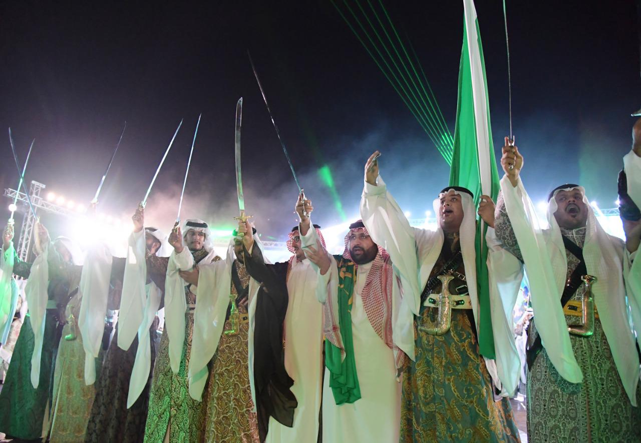 فيما ألقيت كلمة أهالي منطقة جازان ألقاها نيابة عنهم الدكتور “حمود أبو طالب” أوضح فيها أن الْيَوْمَ الوطني منقوش في ذاكرة كل مواطن، يعيش على ثراء هذا البلد العزيز الذي وحده مؤسس هذا الكيان الشامخ الملك عبدالعزيز بن عبدالرحمن “رحمه الله” تحت راية التوحيد لا إله إلا الله محمد رسول الله, وما شهدته المملكة من جمع للصف ووحدة وطنية شاملة على يد الموحد الباني, والتطور والنمو الذي شهدته المملكة في شتى المجالات في عهده ومن بعده أبنائه البررة حتى هذا العهد الزاهر لحكومة خادم الحرمين الشريفين الملك سلمان بن عبدالعزيز آلِ سعود – حفظه الله_