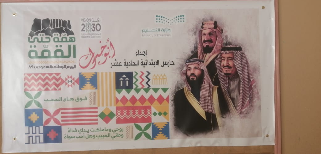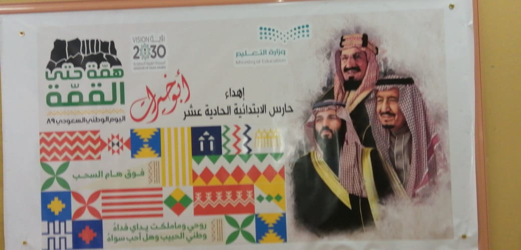 وعبر حارس المدرسة ابو خيرات عن فخره واعتزازة بهذة المناسبة الغالية التي تحل عل قلوبنا وقلوب الطالبات والمعلمات في كل عام لتجسد الملحمة التاريخية لملوك هذه البلاد بكل نهضة وتقدم وازدهار في مجال العلم والتعليم وفي شتى المجالات