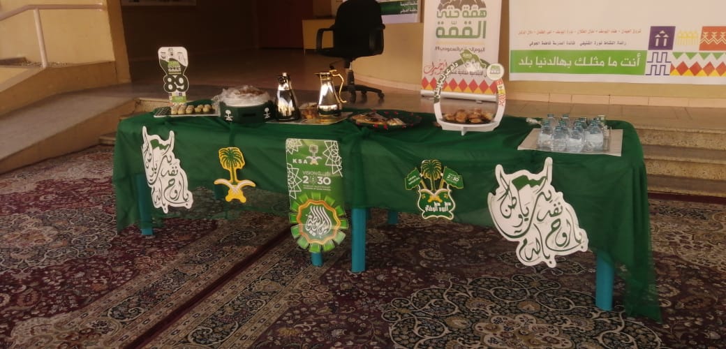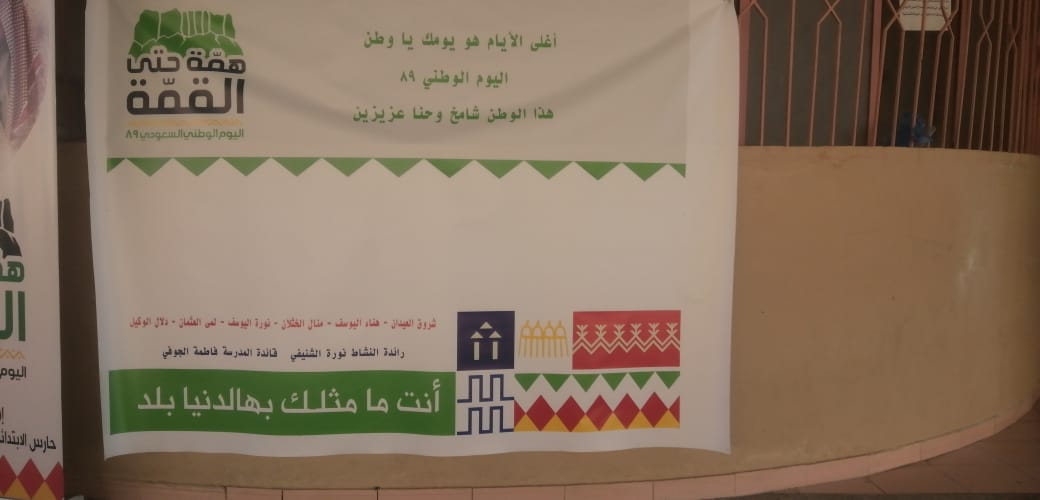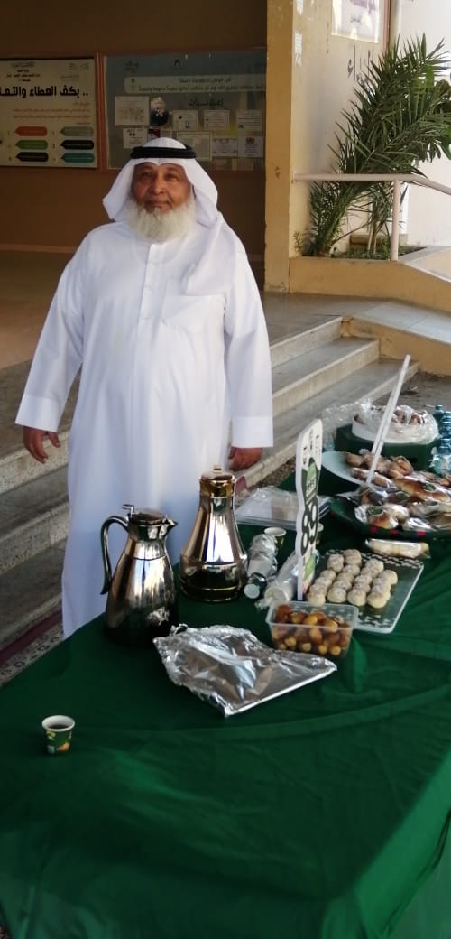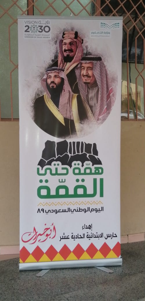 ضمن فعاليات اليوم الوطني 89 للمملكة العربية السعودية قام حارس مدرسة ابتدائية الحادي عشر بالرياض الحسن بن علي ابو خيرات بتوزيع اعلام وهدايا وشعارات وطنية لطالبات والمعلمات