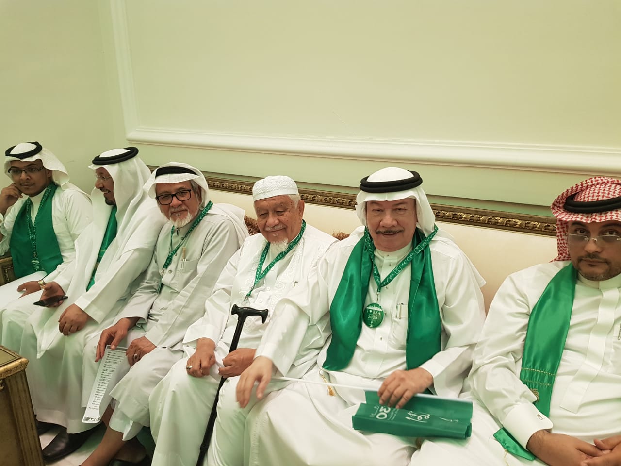 أقام أهالي مكة المكرمة إحتفالا بمناسبة اليوم الوطني المجيد لوطننا الحبيب المملكةالعربية السعودية وذكرى التاسعة والثمانين (89) لتأسيس المملكة – أقيمت الإحتفالية بعنوان :- ( همة حتى القمة ) – أقيم الإحتفال بقاعة الشيخ / عوض الأحمدي – رحمه الله – وبحضور عددمن أصحاب المعالي والسعادة ومدراء الإدارات الحكومية وأصحاب الفضيلة والمشائخ ورجال الأعمال ورجال الصحافة والإعلام – وبحضور سمو الأميرة / الجوهرة – وعدد من سيدات الأعمال تتقدمهم عميدة الأسر المنتجة بمكة المكرمة الأستاذة / فاطمة عمر قربان – وعدد من الاعلاميات:.