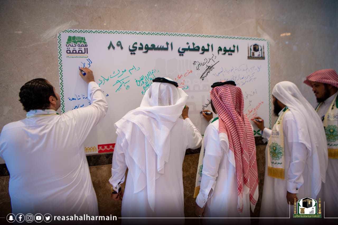 أقامت الرئاسة العامة لشؤون المسجد الحرام والمسجد النبوي اليوم بمكتبة الحرم المكي الشريف ببطحاء قريش في مكة المكرمة احتفالا بمناسبة اليوم الوطني السعودي (89) تحت رعاية معالي الرئيس العام لشؤون المسجد الحرام والمسجد النبوي الأستاذ الدكتور عبدالرحمن بن عبدالعزيز السديس، وحضر الحفل سعادة وكيل الرئيس العام لشؤون المسجد الحرام الأستاذ أحمد بن محمد المنصوري، وسعادة وكيل الرئيس العام للشؤون الإدارية والمالية الدكتور سعد بن محمد المحيميد، ومساعديهم، ومديري العموم، وعدد من منسوبي الرئاسة.