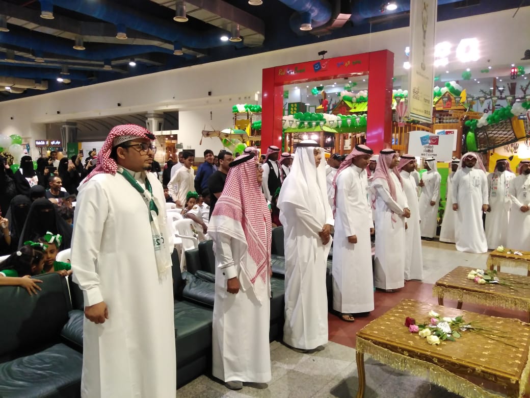 دشن سعادة مدير فرع وزارة العمل والتنمية الاجتماعية بجازان المهندس أحمد القنفذي وبحضور مساعد المدير العام لفرع الوزارة الأستاذ يحى سفياني احتفالات فرع الوزارة باليوم الوطني ٨٩ تحت شعار ” همة حتى القمة “في كادي مول.