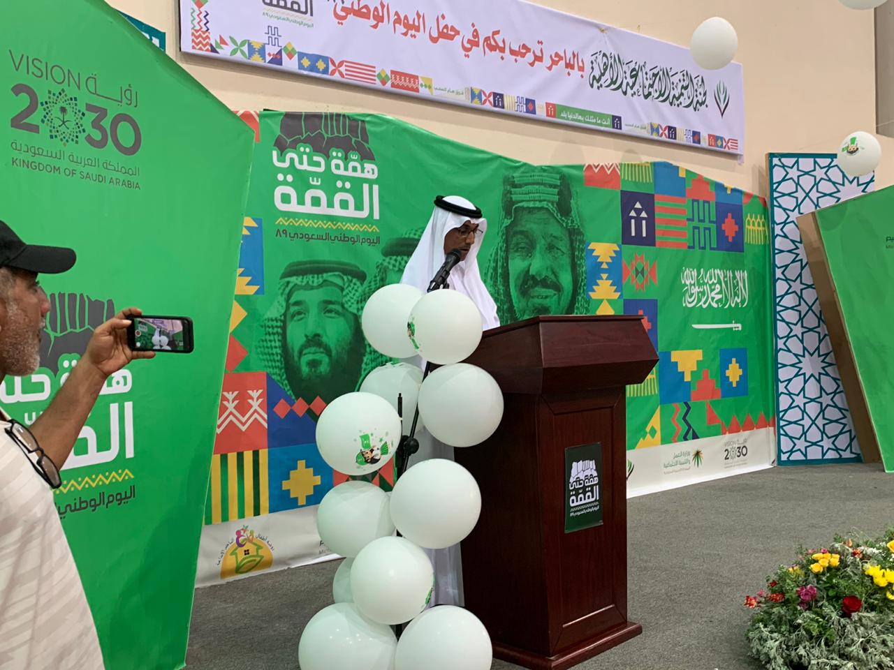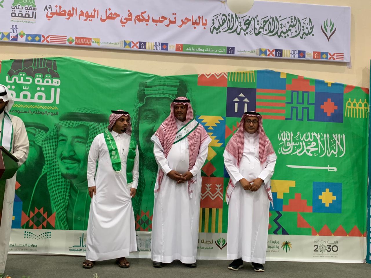 مساء الأربعاء 26 محرم 1441هـ وبحضور شيخ الباحر الأستاذ عمر أحمد عطية وابن البلدة البار مساعد مدير تعليم صبيا الأستاذ ربيع مهدي عطية أقامت لجنة التنمية الاجتماعية بالتعاون مع نادي الحي بثانوية الباحر حفلًا بهيجًا بمناسبة اليوم الوطني 89 .