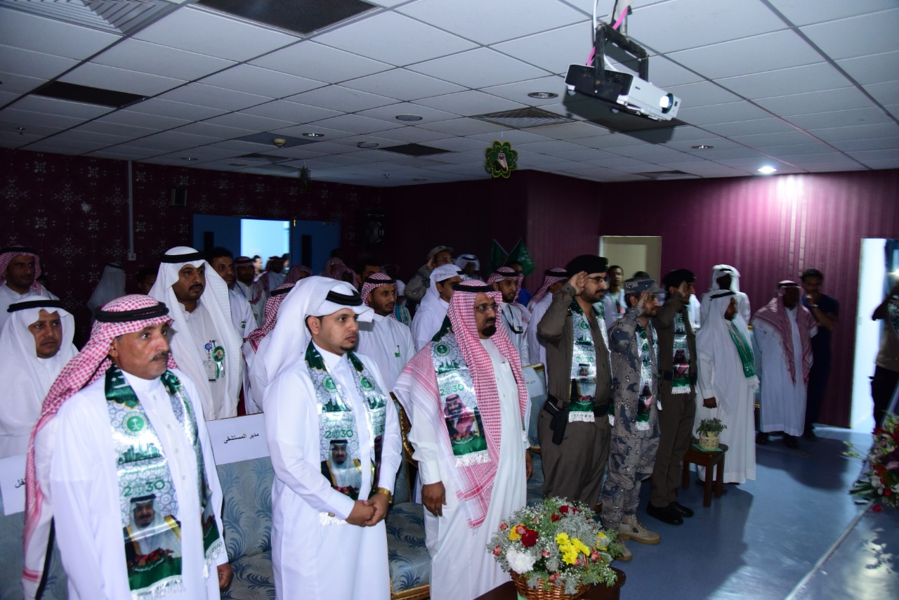 بعد ذلك أقيم حفل خطابي في قاعة المستشفى الذي بدأ بالنشيد الوطني، ثم القرآن الكريم، وألقى مدير المسشفى خالد الحارثي، كلمة هنأ فيها القيادة والشعب السعودي باليوم الوطني، وقدم شكره للمحافظ على الحضور والرعاية ولجميع الجهات الحكومية، والجهات الراعية لمشاركتهم هذه المناسبة .