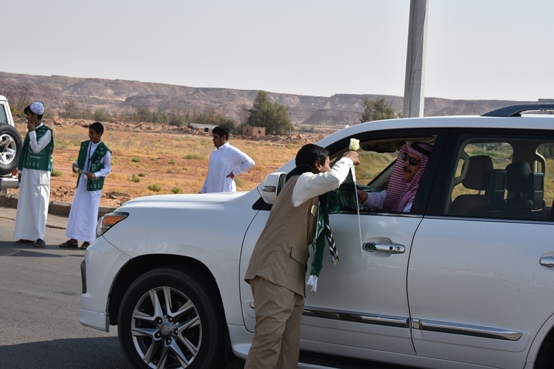 و في ذات السياق قام مجموعة من الطلاب و بمشاركة مركز شرطة صوير بتوزيع الأعلام السعودية و الورود متوجة بالعبارات الوطنية في شوارع و ميادين هديب .