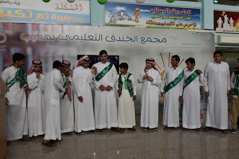 نفّذ مجمع الخندق التعليمي بهديب ، عددًا من الفعاليات والبرامج الخاصة للاحتفاء باليوم الوطني التاسع والثمانين للمملكة العربية السعودية والذي يأتي تحت شعار “همة حتى القمة” ؛ داخل و خارج المدرسة .