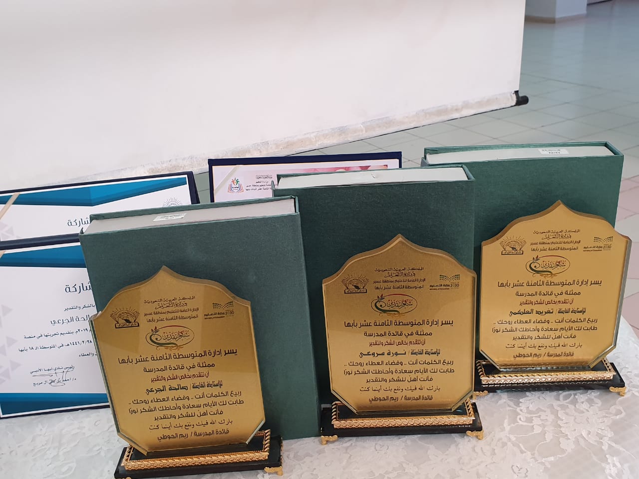 بعد ذلك كرمت قائدة المدرسة الأستاذة/ ريم الحوطي المتحدثتين ومديرة الحوار .