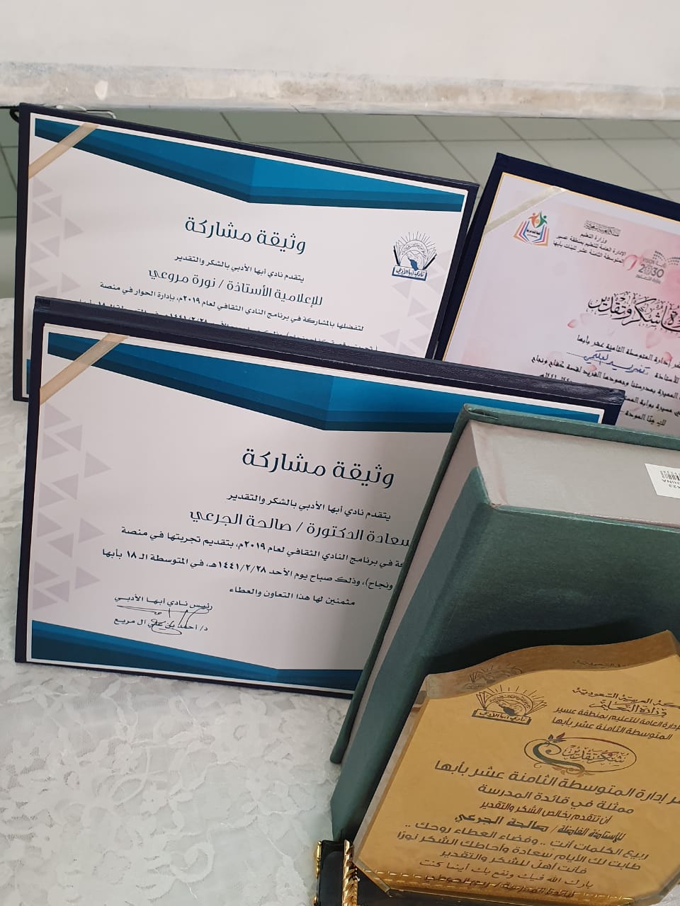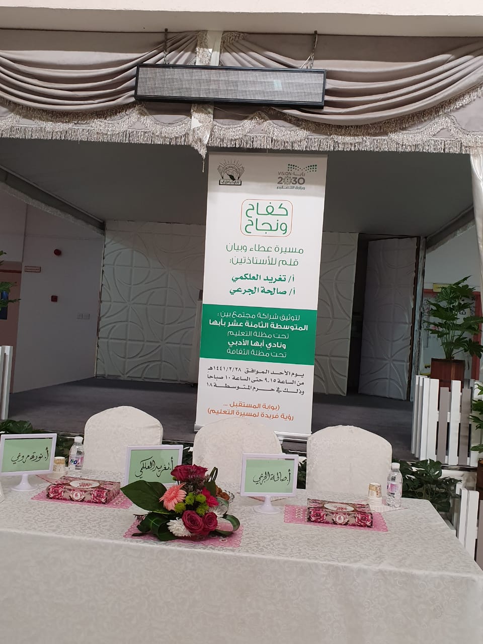 بالتعاون مع نادي أبها الأدبي ،الجرعي والعلكمي تتحدثان عن قصة كفاحهما ونجاحهما لطالبات المتوسطة الـ١٨ بأبها..