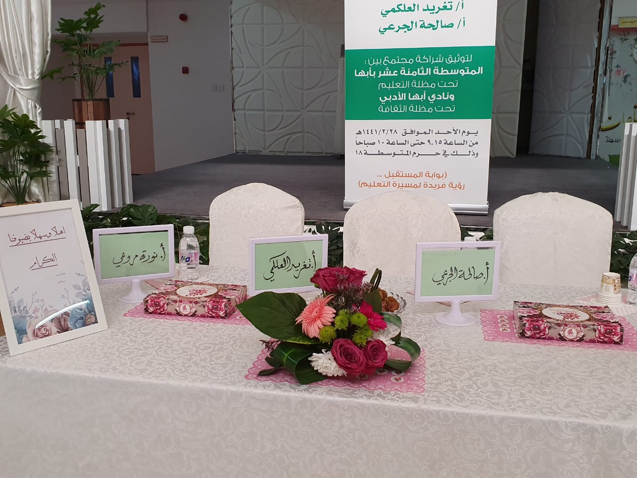 نظمت المتوسطة الـ١٨ للبنات بأبها صباح اليوم الأحد لقاءً بعنوان : “قصة نجاح وكفاح”، وذلك بالتعاون مع نادي أبها الأدبي ضمن برامج الشراكات، وذلك بحضور قائدة المدرسة الأستاذة /ريم الحوطي وتنسيق عضو النادي الأدبي الأستاذة / نوال طالع.