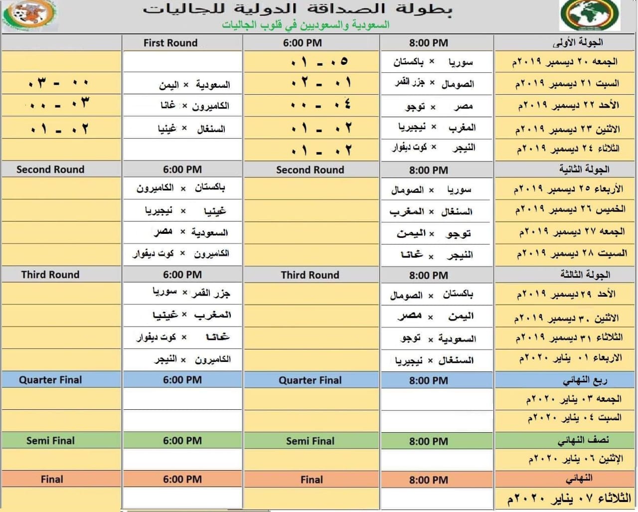 وسيبدأ اليوم الأربعاء ٢٥ ديسمبر ٢٠١٩م الدور الثاني بلقائين الأول يجمع منتخب جاليات سوريا مع الصومال وباكستان مع الكاميرون ..