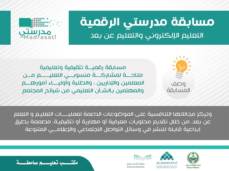 ضمن شراكتها مع مكتب التعليم بلدية صامطة تنشر عددا من اللوحات الدعائية للتعريف بـ #مسابقة_مدرستي الرقمية